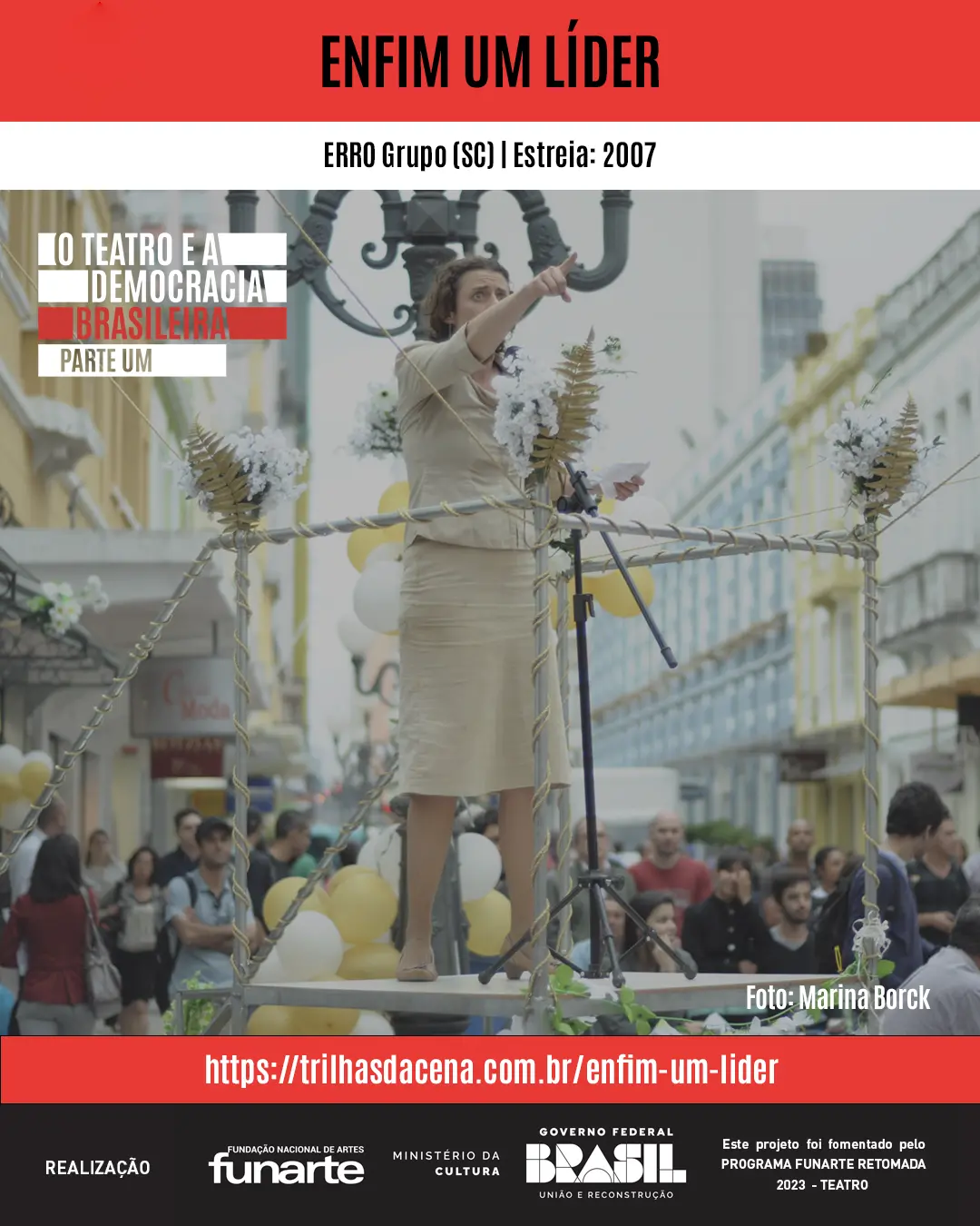 42 horas e Enfim um Líder! O ERRO Grupo, de Santa Catarina, chega ao projeto O teatro e a democracia brasileira com este acontecimento teatral.