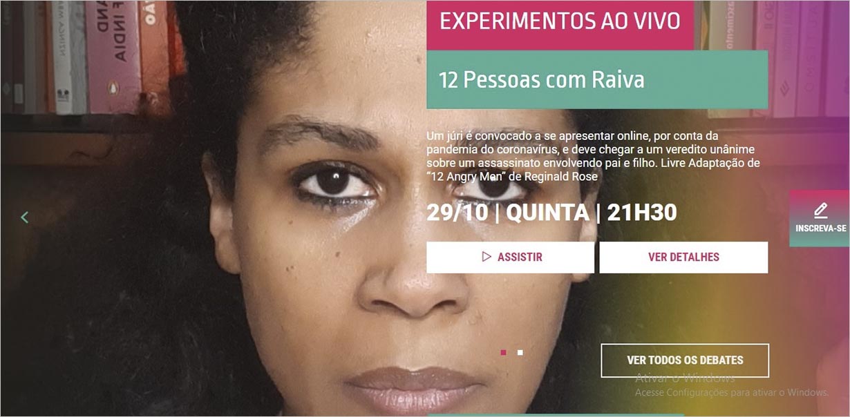 Historicamente, o teatro sempre tomou para si, como experimentação de linguagem e/ou modo de difusão, os recursos tecnológicos de outras mídias, como o rádio e a televisão. Assim, podemos pensar que a retomada de uma peça criada quase 70 anos atrás para o teleteatro também sinaliza um contato com o passado, com um momento em que a TV foi um poderoso mecanismo de difusão do teatro. A pandemia foi um período de intenso debate crítico sobre as potencialidades e limitações das artes da cena. Não à toa, 12 pessoas com raiva foi a abertura da 14ª Cine BH, edição online do festival de cinema da capital mineira cuja mostra temática se dedicou a projetos de teatro que exploravam a linguagem digital e uma relação mais evidente com o audiovisual. Não é todo dia que uma peça de teatro abre um festival de cinema.