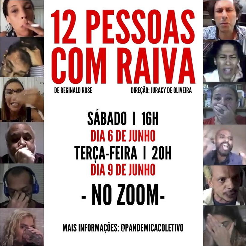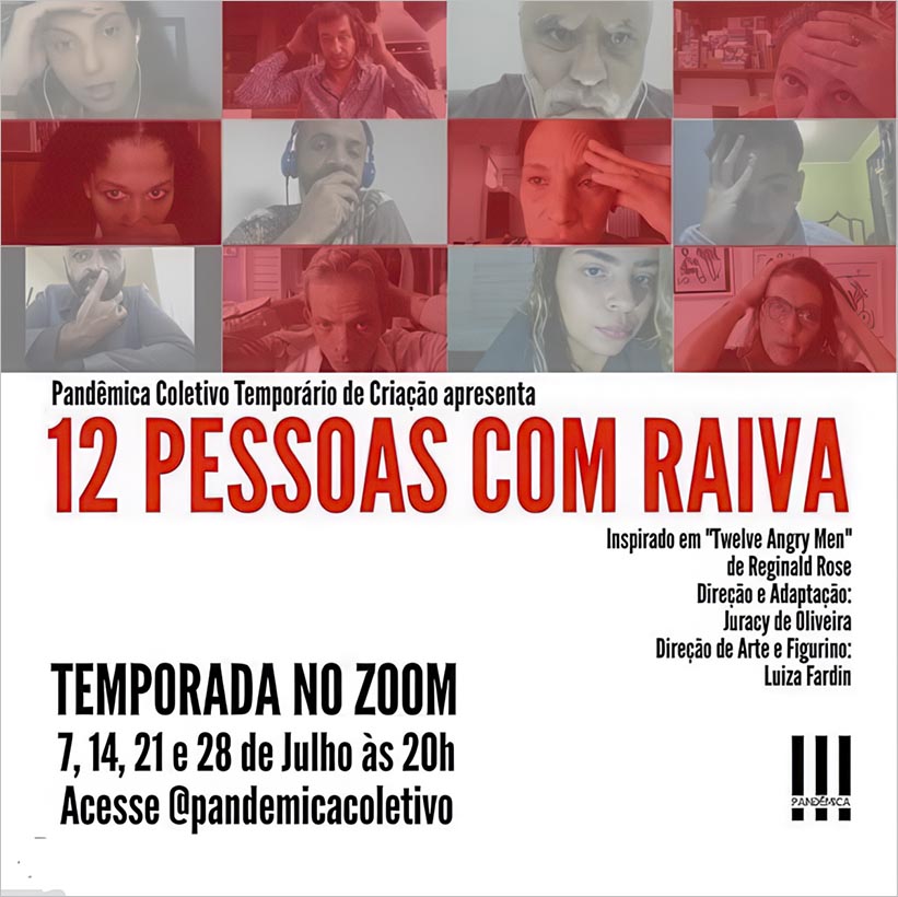 Em maio de 2020, ainda nos primeiros meses da pandemia de COVID-19, estreia uma nova versão pelo Zoom, com tradução, adaptação e direção de Juracy de Oliveira, com o título 12 pessoas com raiva. Com essa peça, entra em cena a plataforma Pandêmica – Coletivo Temporário de Criação, que dali por diante tomaria para si, com dedicação diligente, a função de promover criações de teatro online, espaços de experimentação e formação, debates públicos e trocas artísticas entre agentes de diversas cidades do Brasil, proporcionando oportunidades de trabalho para profissionais das artes da cena e momentos de fruição estética para espectadores de todo o país em um momento de imensa vulnerabilidade física, mental, emocional, social e econômica em escala mundial. A coragem de assumir focos de liderança generosa em tempos como aqueles não é nada banal. O que se fez no teatro online entre 2020 e 2022 é de profunda relevância para a história do teatro brasileiro.