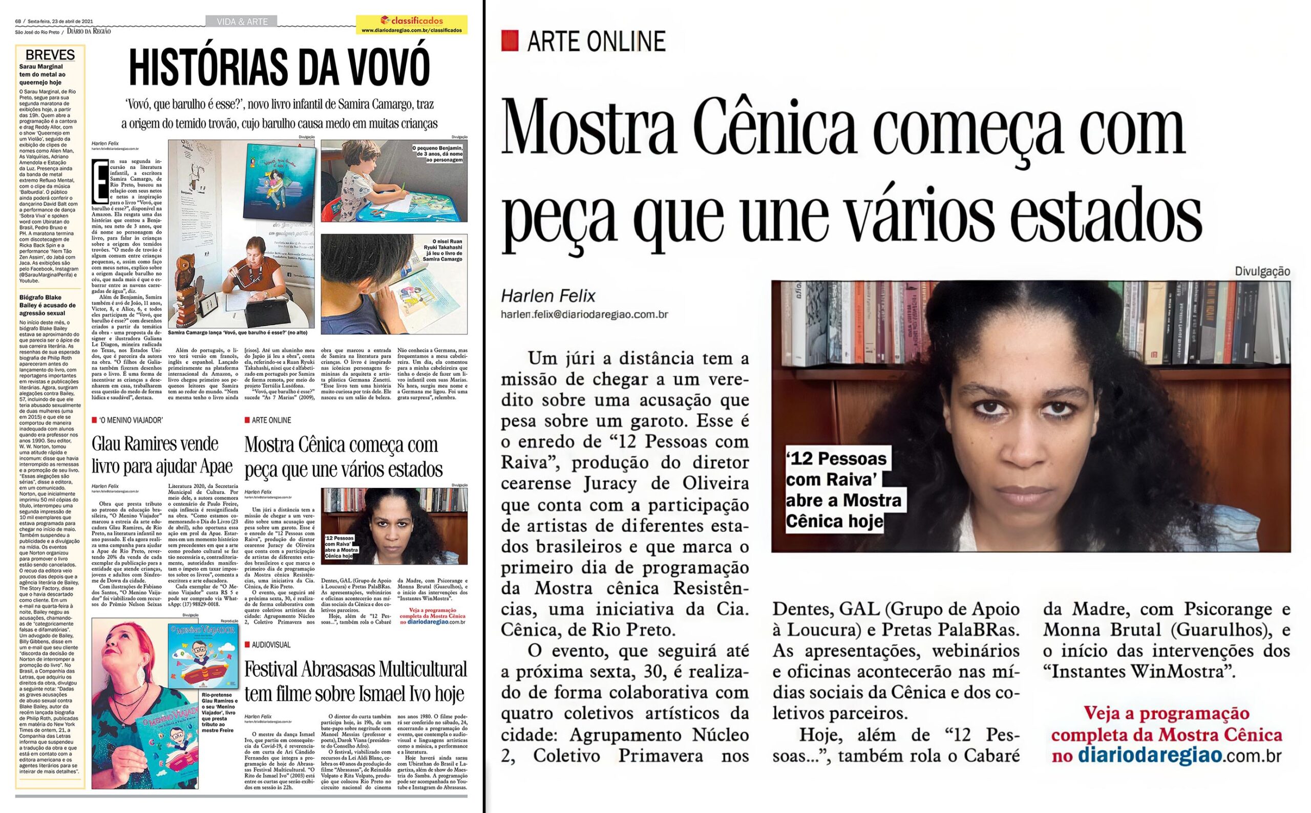 O diálogo ainda se intensifica pela própria constituição do Pandêmica, um coletivo feito por artistas de várias partes do Brasil propondo um deslocamento geográfico, ético e artístico. Então, com 12 pessoas com raiva, colocamos em cena a pluralidade de vozes e experiências desses muitos Brasis.