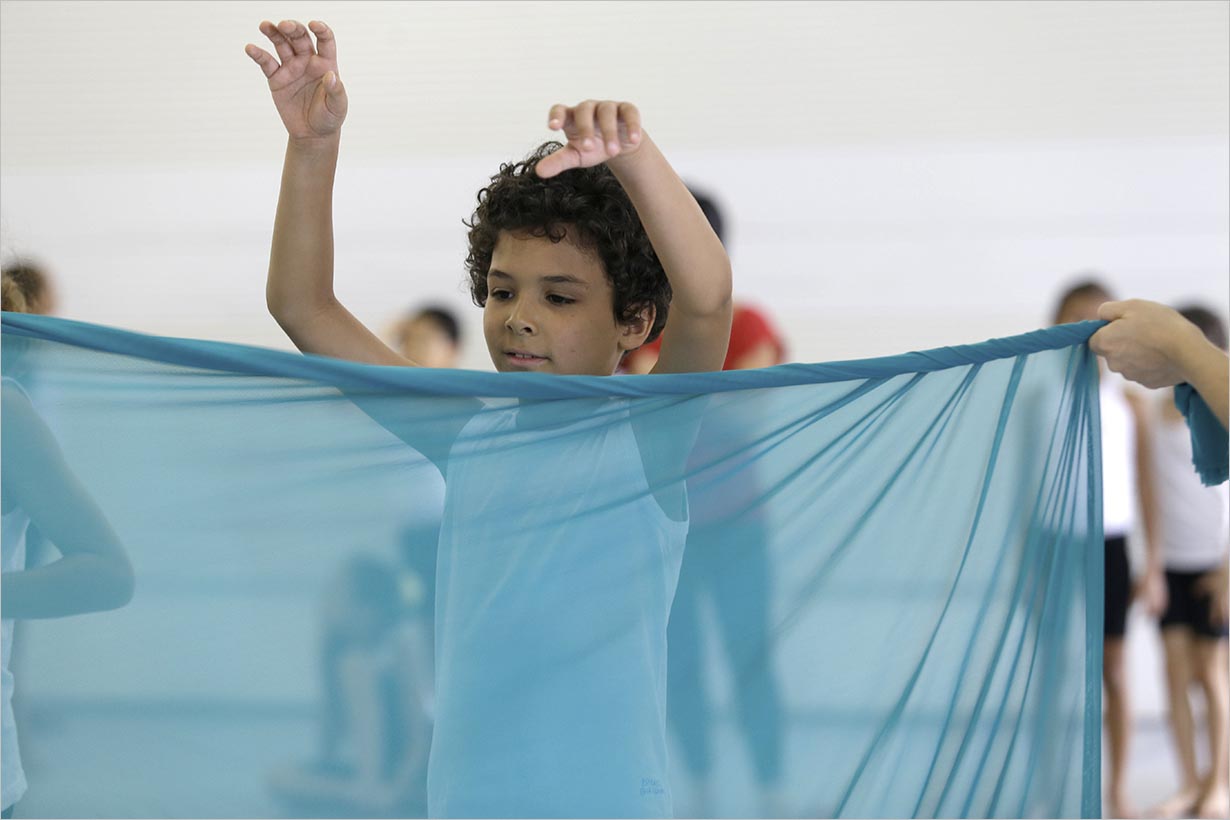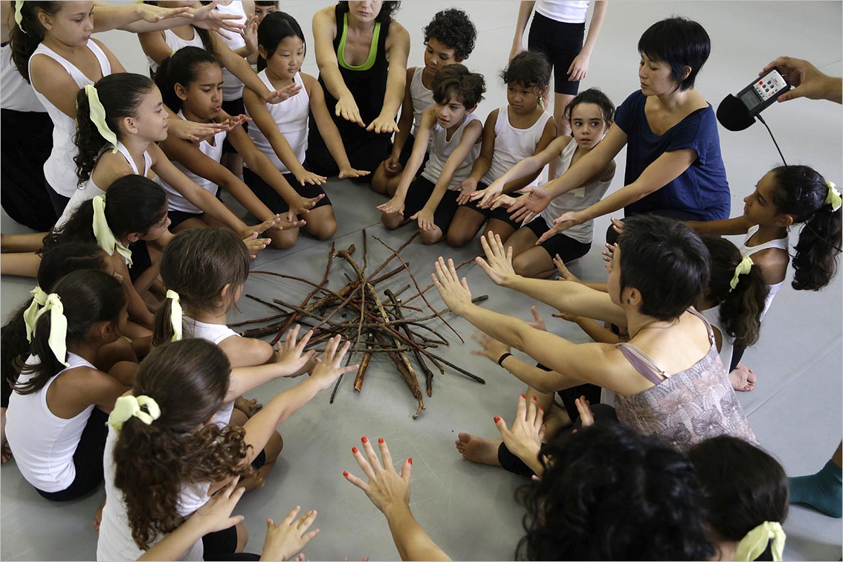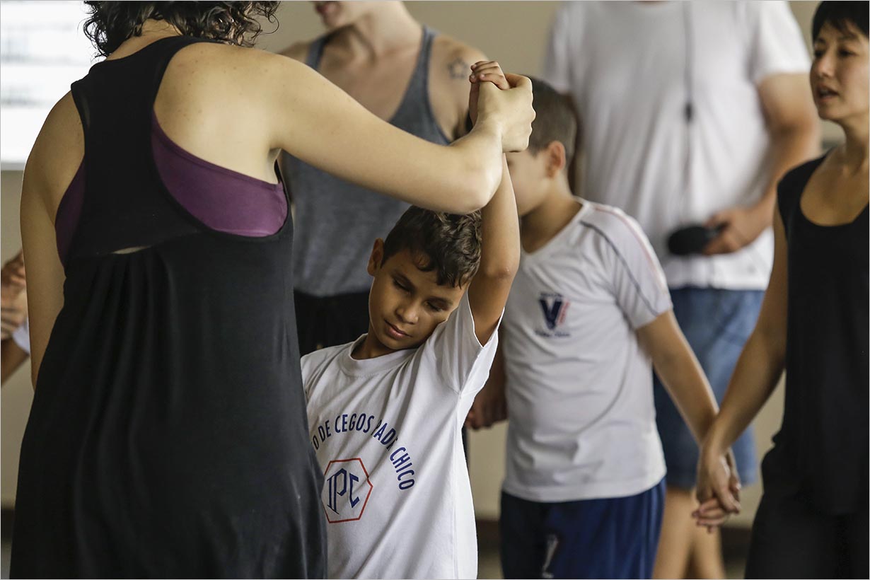 A exposição virtual “A Poética dos Encontros” idealizada por Uxa Xavier, Diretora do grupo Lagartixa na Janela, é dedicada a compartilhar os conteúdos dos encontros realizados para e com crianças do curso livre da Escola de Dança de São Paulo e com crianças deficientes visuais do Instituto de Cegos Padre Chico. A ideia de realizar encontros com dois públicos distintos em seus contextos socioculturais teve como objetivo potencializar e agir nas antiestruturas, assim como propõe Victor Tuner, importante antropólogo estudioso da performance: “As antiestruturas surgem quando acontece a liberação das capacidades humanas de cognição, afeto, volição, criatividade…”. O objetivo de criar proximidade com o público infantil em ações como essas geram um novo olhar para uma dança que não pertence às referências midiáticas direcionadas a esse público.