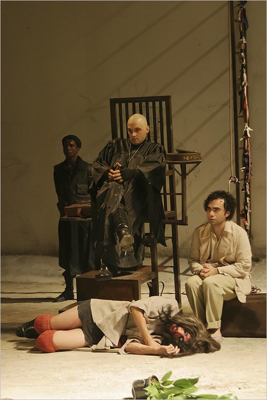A primeira metáfora desse nó inextrincável é o presídio, lugar onde se aloja a encenação. Concreto e real, é também símbolo da Babilônia moderna, lugar onde silenciou a harpa, não se ouve mais o canto do moinho nem a voz do marido e da mulher. É onde desejaríamos circunscrever o mal e é, portanto, o lugar escolhido para mostrar como o que está dentro se parece com o que está fora.