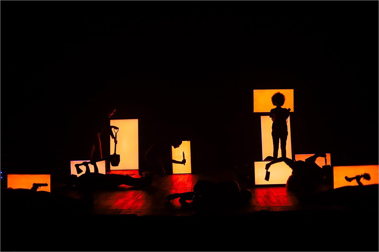 DOGMA é um espetáculo multimídia, diante de uma instalação visual com 10 televisores onde os performers criam imagens a partir do decálogo bíblico. O trabalho coloca em discussão dogmas que não aceitam ser tocados, onde nos é condicionado desde cedo a obediência sobre os costumes e tradições, fazendo esquecer da nossa violência instintiva.