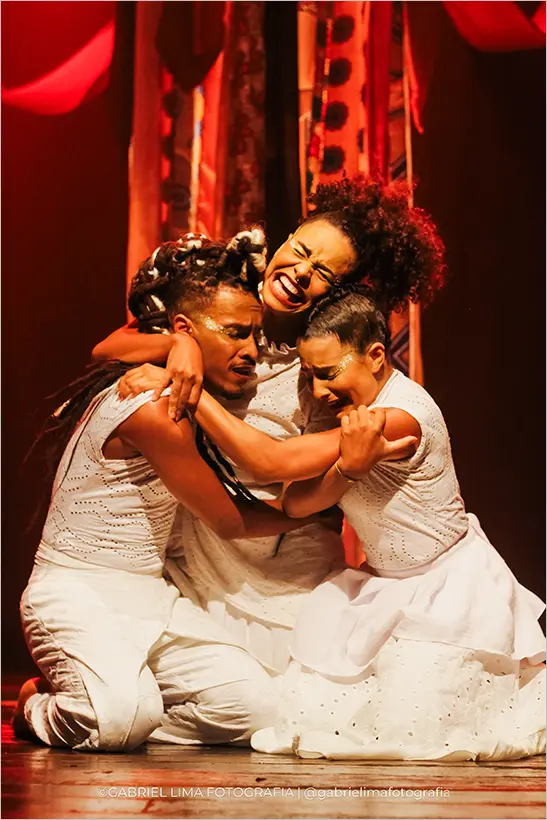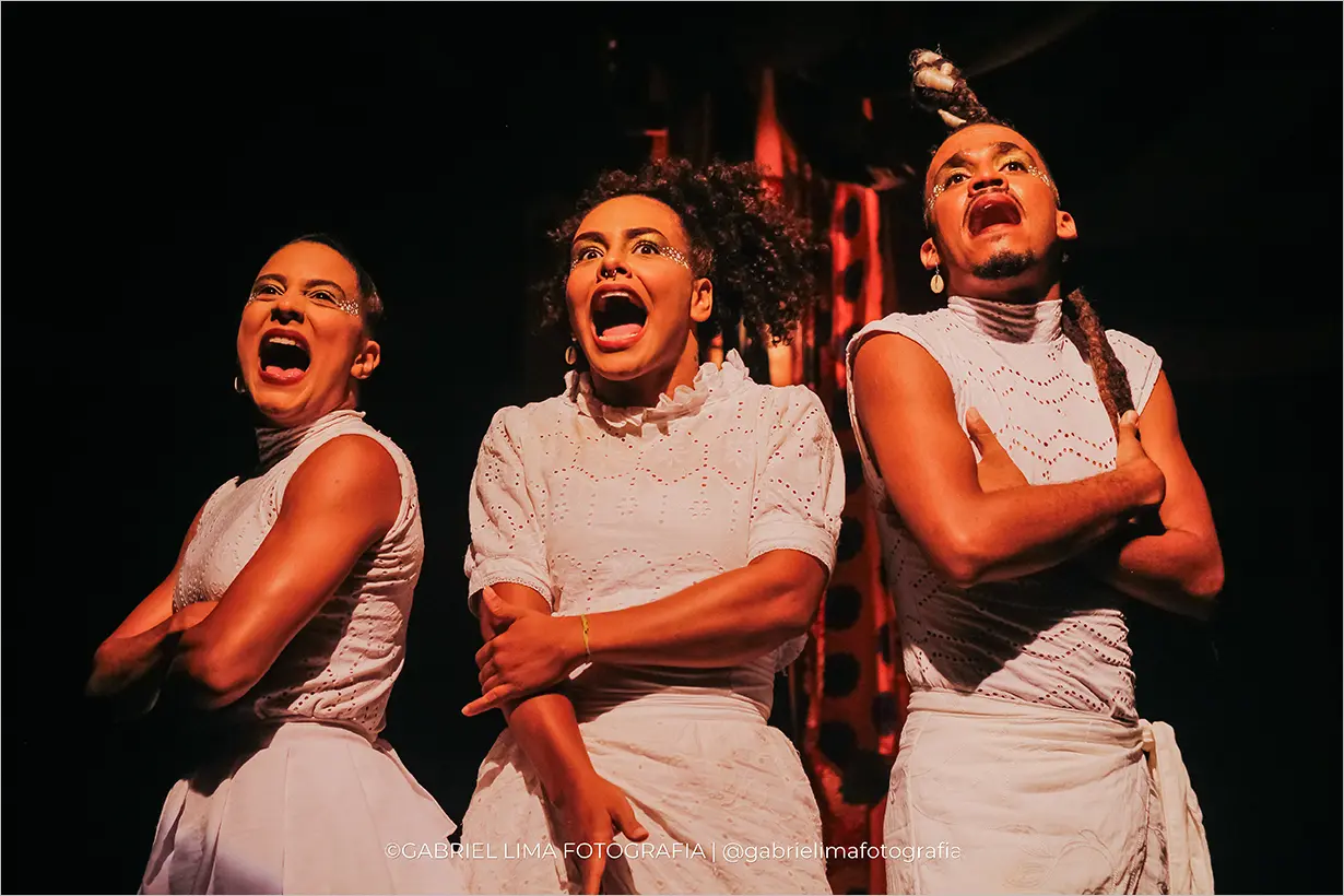 Em um território onde tempo e existência se entrelaçam, três jovens negros – Dofona, Dofonitinho e Famo – preparam sua peça de formatura enquanto buscam respostas para uma pergunta urgente: como envelhecer em um país que lhes nega o direito de viver? Nessa travessia, recorrem à sabedoria de uma ialorixá, que invoca Iroko, o orixá do tempo, para abrir caminhos. Em meio a confrontos com uma professora que simboliza um teatro colonizador e a encontros com mitos ancestrais, música, dança, rito e poesia se fundem, culminando em um espetáculo sobre tempo, vida e resistência negra. Assinada pela dramaturga Onisajé, esta obra constrói uma narrativa afro-mítica e corporifica o Macumdrama, imersa na poética do Teatro Preto de Candomblé.