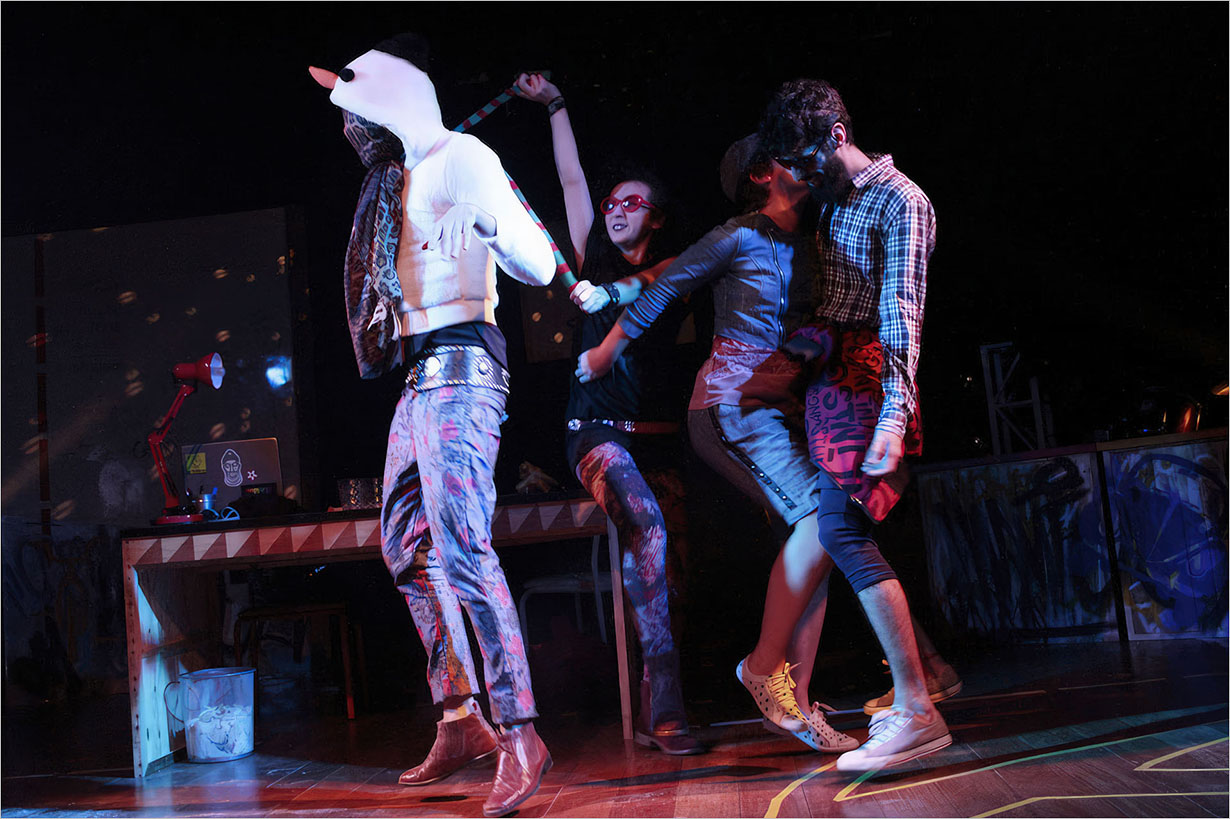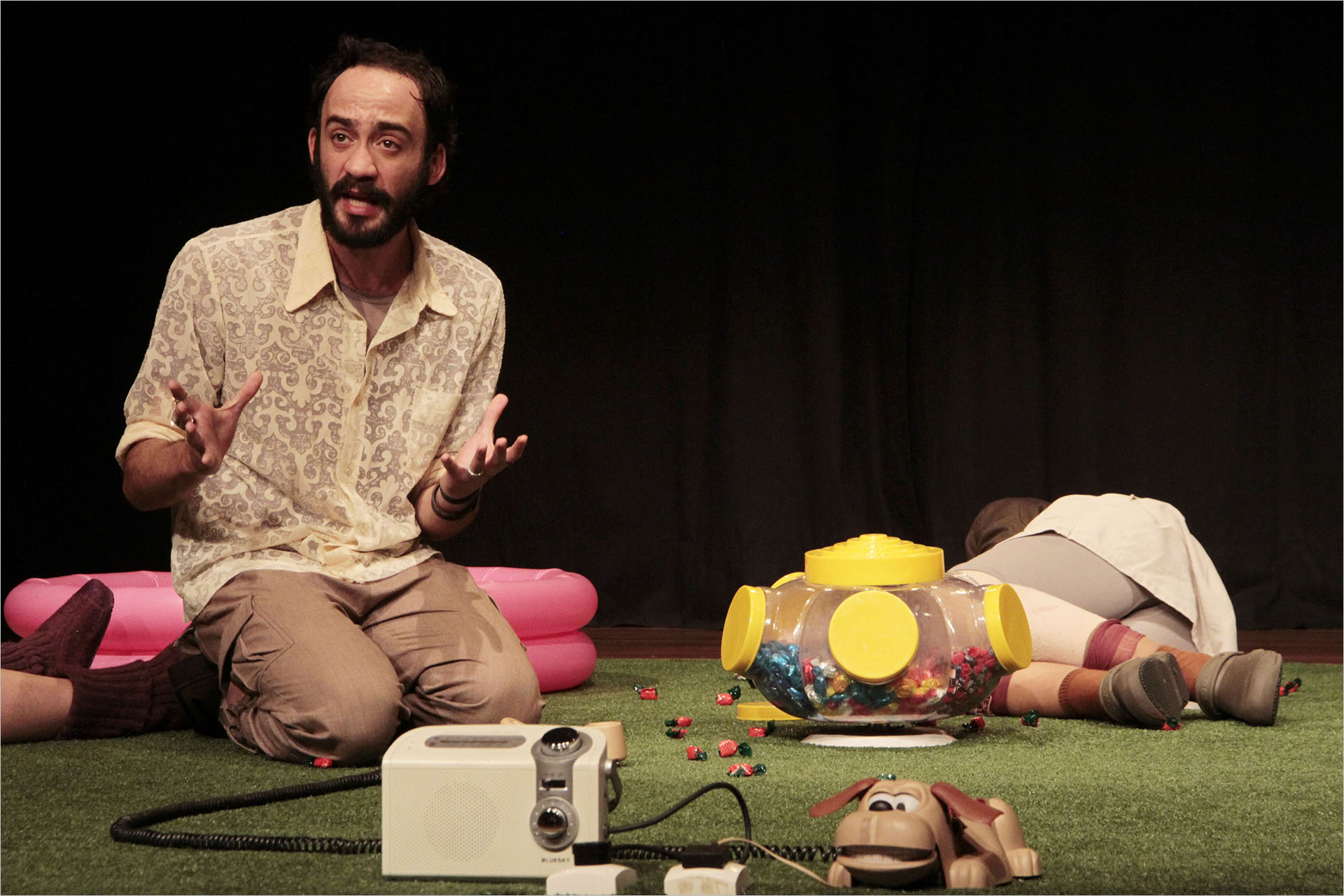 Ao mesmo tempo em que o espetáculo aciona um tipo de humor desestabilizante e estabelece pontos de relação com o espectador, cria espaços de discussão sobre criação de condições de sobrevivência e de formas de estar junto.