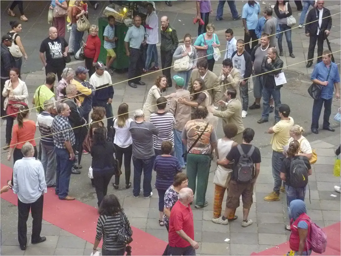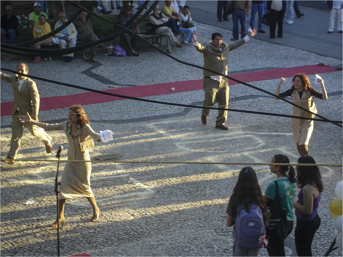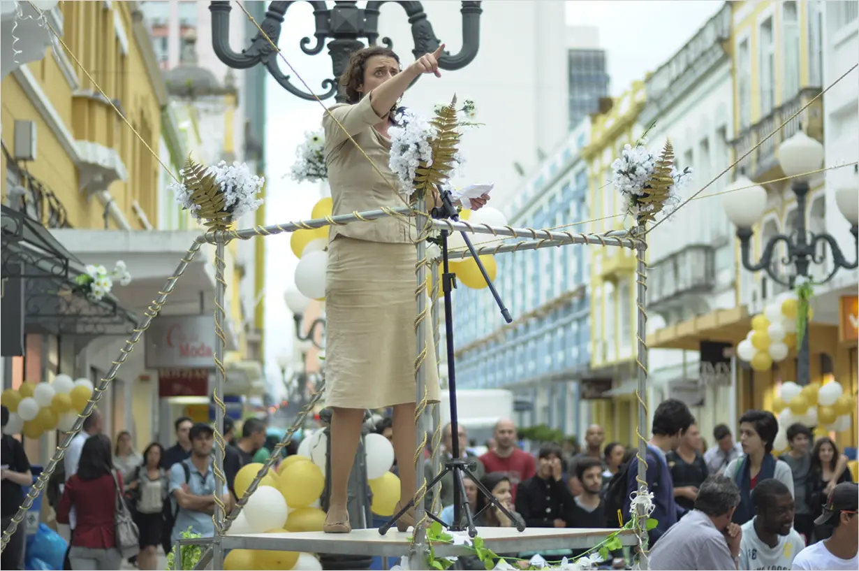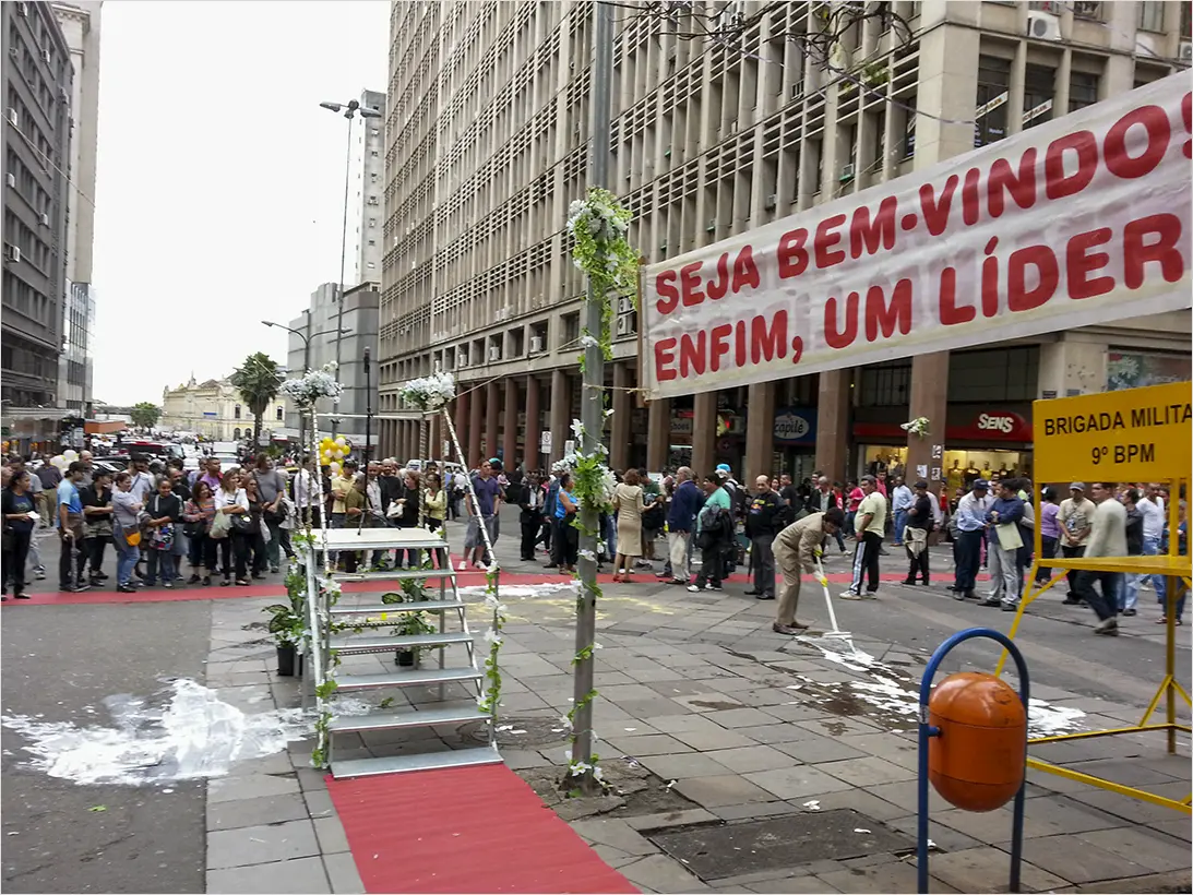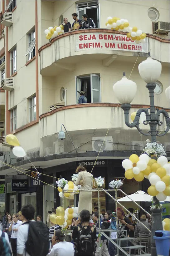 A combinação das estratégias de divulgação e das ações performativas intensifica as tensões entre o real e o “fabricado”. O resultado é a ampliação do espaço da rua em um campo democrático de discussão e reflexão, envolvendo tanto os mecanismos de marketing, responsáveis pelo estabelecimento de uma falsa expectativa comum, quanto a discussão sobre a ilusão que media o desejo por um salvador social.