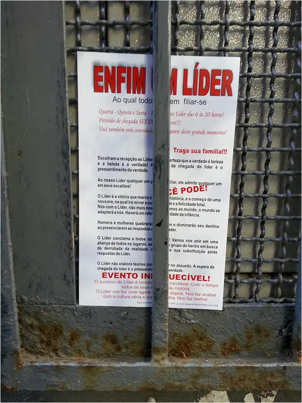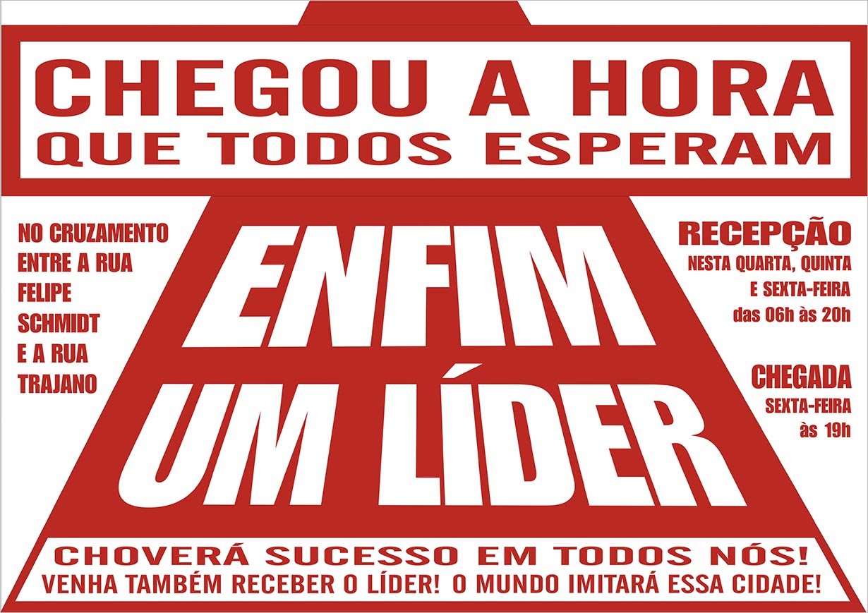 Mesmo com todos esses fracassos o ERRO Grupo continuou em contato com o Líder e persistiu na dificílima missão em trazê-lo à região da Grande Florianópolis. Agora com dez anos de experiência em ações de rua e com o patrocínio da Petrobras via Lei Rouanet do MinC, o ERRO suspende todas as suas atividades artísticas para uma única ação: esperar a chegada do Líder.”