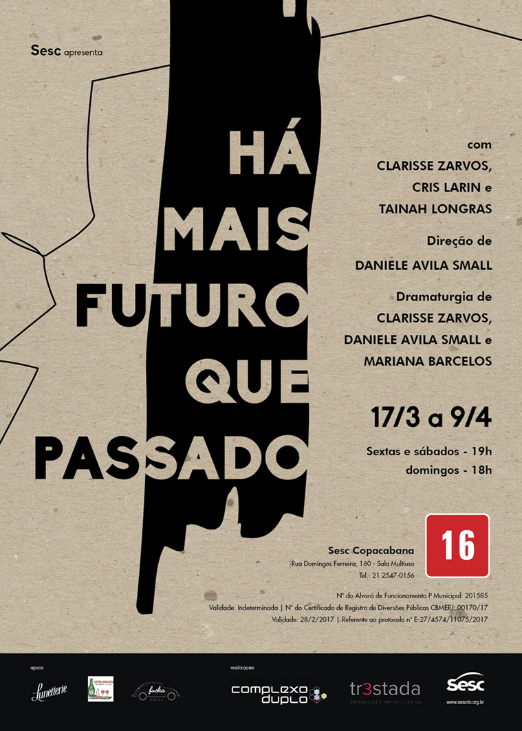 Essa é a pergunta que impulsionou a criação de Há mais futuro que passado – um documentário de ficção. Com direção de Daniele Avila Small e dramaturgia da diretora com Clarisse Zarvos e Mariana Barcelos, a peça foi realizada por uma equipe liderada por mulheres em todas as funções criativas e técnicas. No elenco estão Clarisse Zarvos, Cris Larin e Tainah Longras, com participação em vídeo de Carolina Virgüez.
