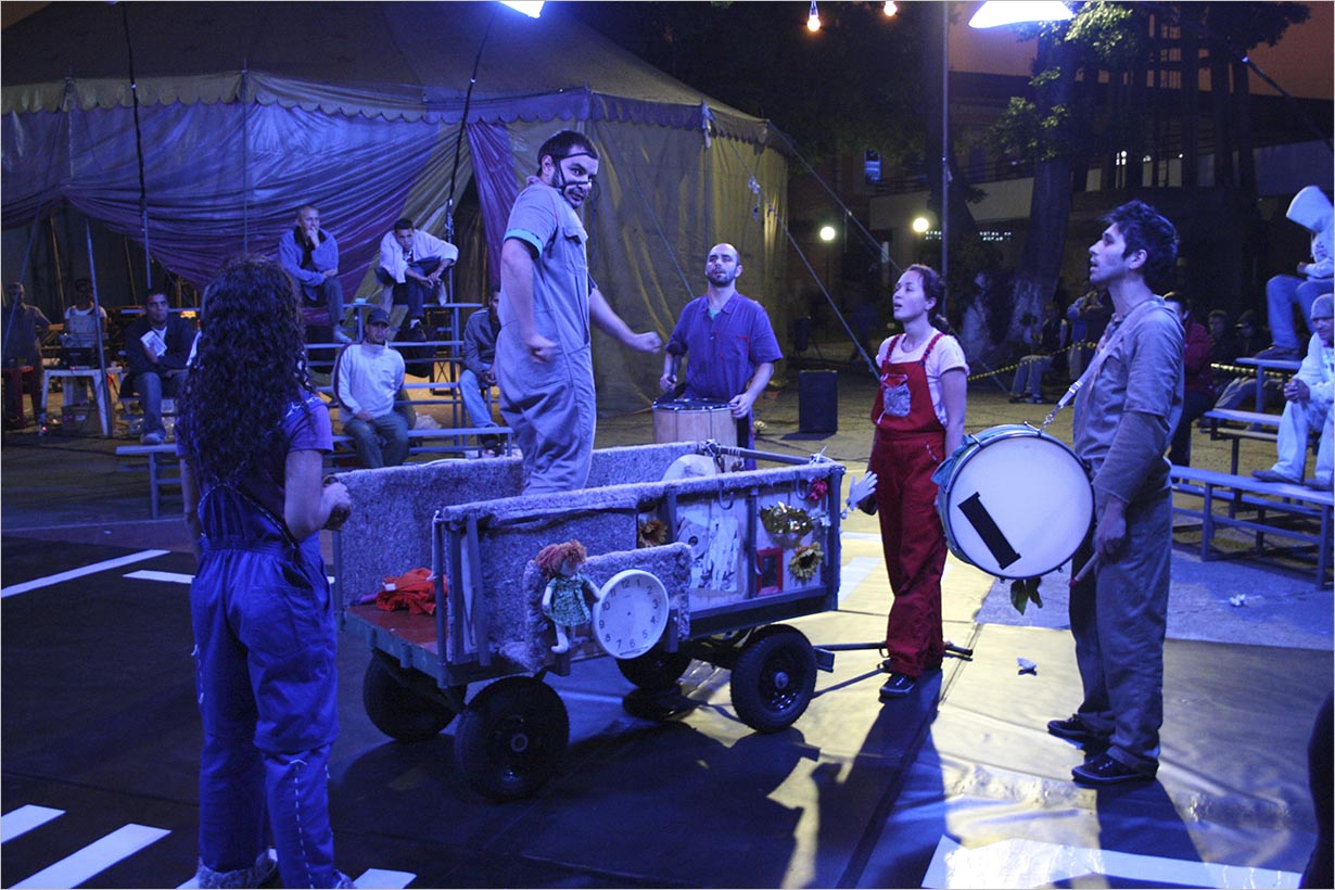 Andressa Ferrarezi, diretora do espetáculo, em depoimento para uma matéria de Gabriela Mellão para a Folha de São Paulo publicada em outubro de 2008, acha necessário “retratar o vagar não pela aventura, mas pelas faltas”. O espetáculo reúne histórias sobre a realidade rotineira dos moradores do Arsenal, microcosmo representativo da sociedade contemporânea. Homens obrigados a aceitar “salários de fome”, ou a mentir sobre a condição de albergado para se manter no emprego, são retratados na trama, que tem como fio condutor a fábula de um trabalhador animalizado pelos esforços por sobrevivência. Na mesma reportagem, a jornalista situa a montagem na trajetória da Cia. Estável, comentando que “a residência artística no Arsenal radicaliza a experiência do grupo em projetos socioculturais – iniciada com a comunidade de Cangaíba, na zona leste de São Paulo, durante a ocupação do teatro Flávio Império, entre 2002 e 2005”.