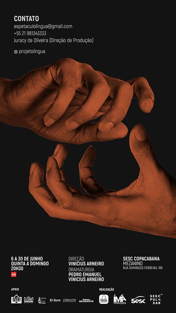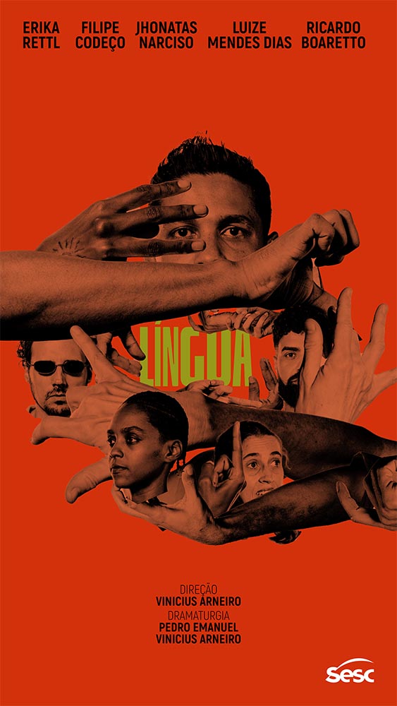 Língua é um projeto de teatro bilícultural (LIBRAS/português) contemplado pelo SESC Pulsar e estreado em junho de 2024 no Mezanino do SESC Copacabana com direção de Vinicius Arneiro. A dramaturgia, escrita ao longo do processo criativo por Vinicius em parceria com Pedro Emanuel, contou com a interlocução da artista surda Catharine Moreira. Este é o segundo projeto idealizado por Vinicius Arneiro e Filipe Codeço onde voltam suas atenções aos paradoxos entre a cultura surda e a sociedade nos moldes em que vivemos. O primeiro projeto idealizado pela dupla foi Aquilo de que não se pode falar – contemplado pelo Rumos Itaú Cultural em 2020 e indicado a 4 prêmios APTR – uma obra escrita também em LIBRAS e português, onde o ator surdo Marcelo William da Silva compartilhava a cena com Filipe Codeço e Jhonatas Narciso. Em Língua essa pesquisa se desdobra e se aprofunda, tendo a interlocução de uma artista surda na dramaturgia e um elenco composto por um ator surdo e 3 outros ouvintes com fluência.