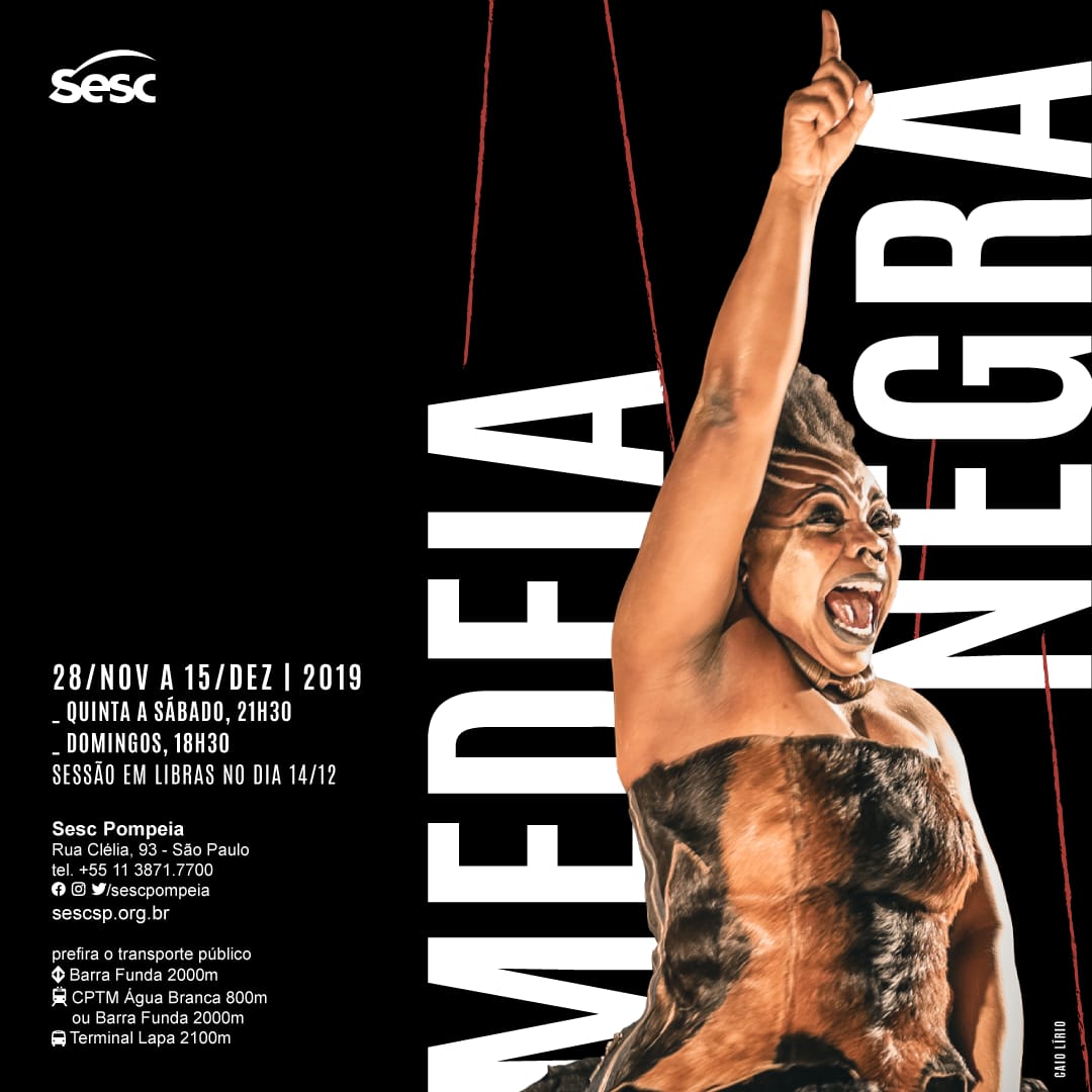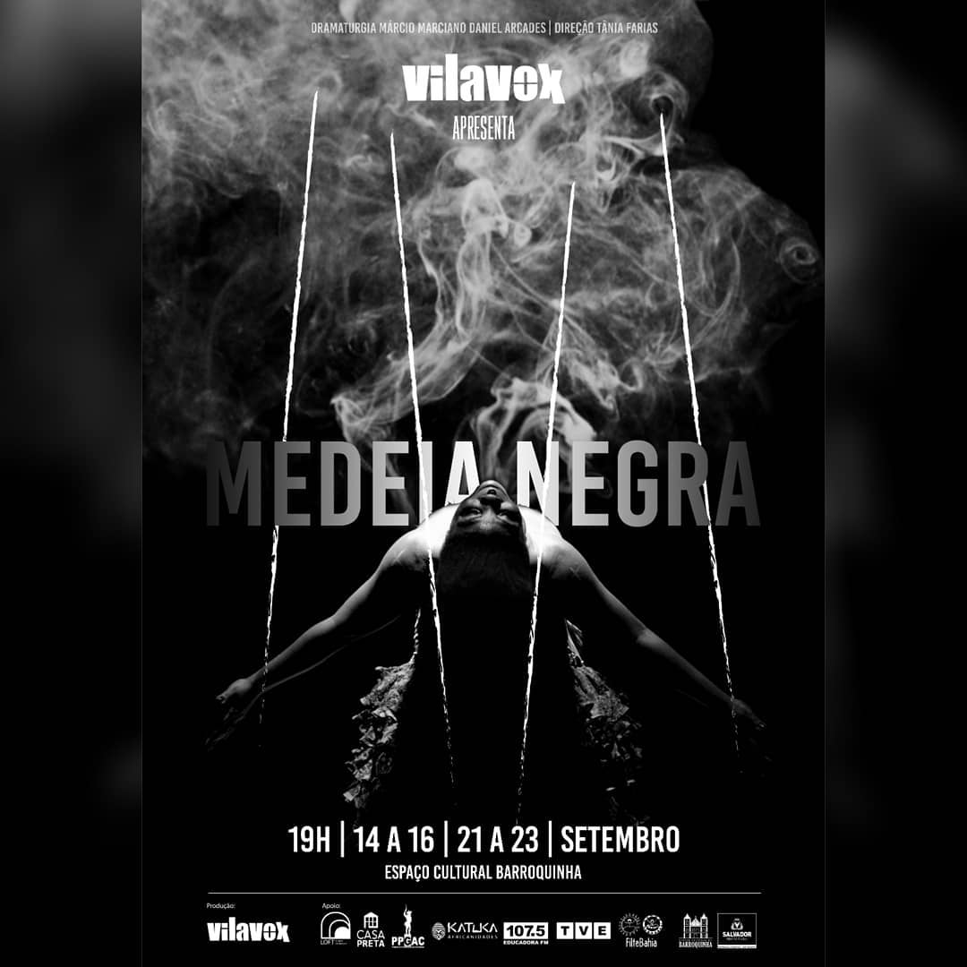Espetáculo teatral listado como uma das montagens nacionais mais importantes de 2018 pela revista Bravo, “Medeia Negra” recria a tragédia grega de Eurípides (480 a.C. – 406 a.C.) para os contornos reais da voz, do corpo e do pensamento de uma mulher negra. Márcia Limma traz a interculturalidade e referências afro-diaspóricas, por meio dos titãs e arquétipos das divindades como Nanã, Iansã, Exu e Omolu. A narrativa expõe as opressões sofridas pela mulher negra em diferentes lugares de fala e tempos históricos. Medeia é vista, por nós, como a fundação de uma exclusão fundamental para o patriarcado: a invisibilização da voz feminina. Sob o nome de “bárbaro” se justifica o exílio e a divisão do mundo entre civilização e barbárie. A peça vai então revelar, para o público, outras possíveis leituras do mito. É uma montagem que não desenvolve propriamente uma história ou um drama, no sentido aristotélico do termo. A história imposta pelo patriarcado é uma metáfora das mortes que as mulheres negras são obrigadas a carregar. Ela nos serve, aqui, como um mito de referência. No tempo passado, presente e futuro, a personagem desconstrói o mito para convocar as mulheres à retomada do poder. A ancestralidade e a evocação aos cânticos negros de libertação disparam um embate entre público e personagem sobre as reflexões levantadas.