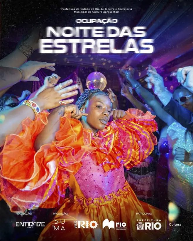 Tudo começou quando Ney, uma bixa preta que organizava a festa junina do Rubens Vaz, atendeu o desejo de suas amigas travestis que o ajudavam a confeccionar as roupas da quadrilha: ceder um dia da festa para elas realizarem um show. Aquele show foi um grande sucesso. Menga, uma bixa que era pai de santo e ligado ao carnaval, viu aquele movimento e batizou-o como “Noite das Estrelas”, firmando um movimento que durou mais de 20 anos pelas favelas da Maré, por outras comunidades e lugares da cena LGBTQIAPN+ da cidade do Rio de Janeiro. Um tipo de movimento que tinha a rua firmada como cena dos palcos, com a performance dos corpos gravada na celebração que arrastava multidões.