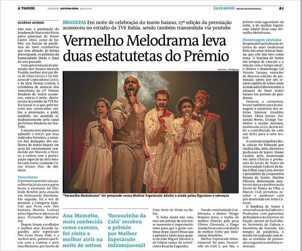 ● “Vermelho Melodrama”, Salvador, julho de 2019 (Direção: Jorge Alencar).