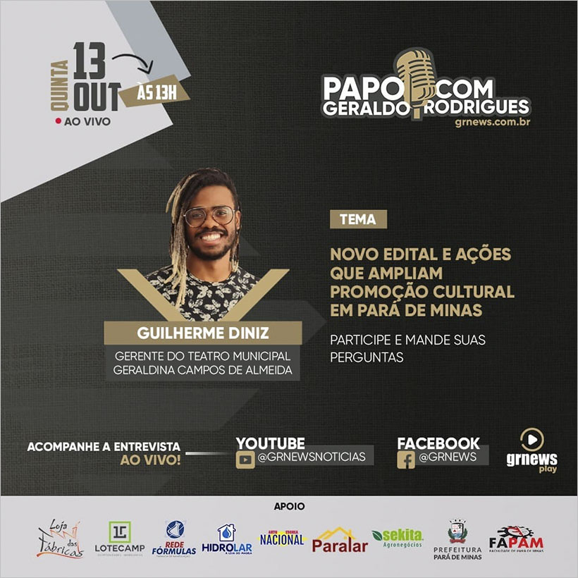 Guilherme Diniz também possui experiência na gestão cultural de instituições públicas e privadas.